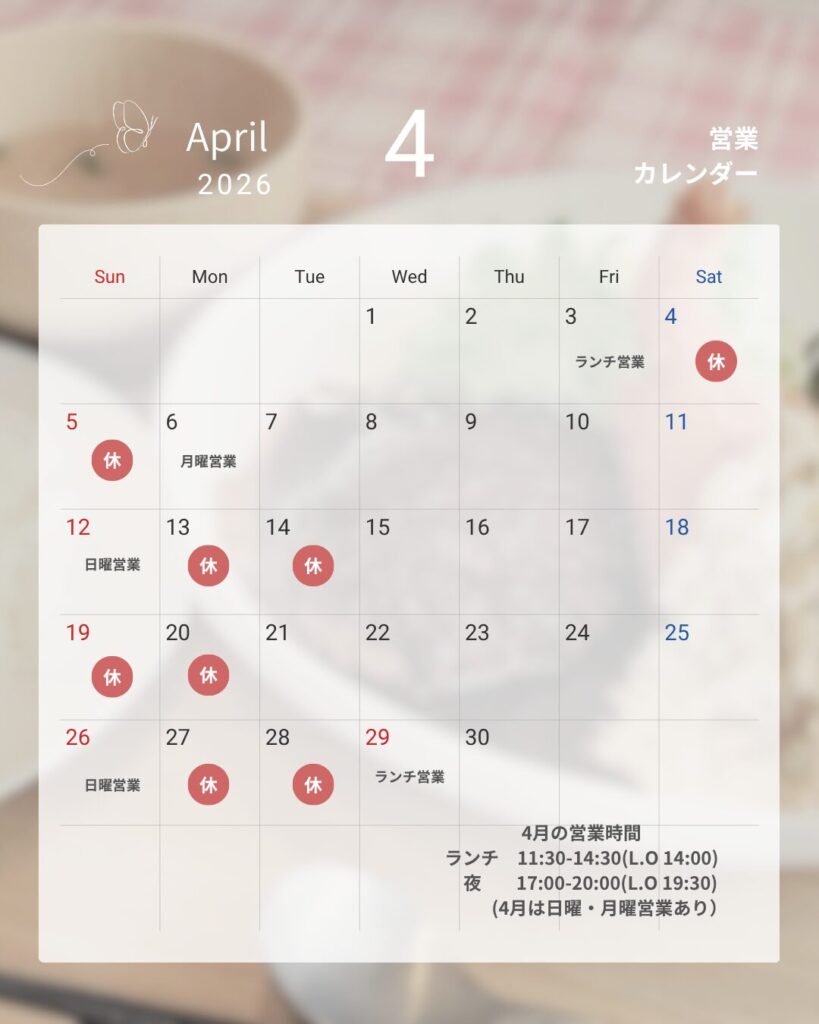 4月は一部イレギュラーな営業日がございます。
